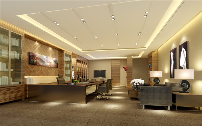 1)辦公樓吊頂?shù)脑煨涂梢苑浅*?dú)特,有創(chuàng)意。由幾個(gè)圓環(huán)形組成,非常的大氣,象征著公司業(yè)務(wù)的完美開展。朱紅色的辦公桌和白色的吊頂搭配非常的和諧,給人一種非常沉穩(wěn)、大氣的感覺。